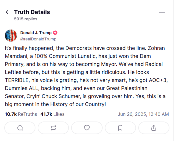 In a fiery social media tirade, former President Donald Trump lashed out at Indian-American politician Zohran Mamdani following his surprising victory in the NYC primary elections. Labeling Mamdani a “radical leftist” and a “dangerous communist,” Trump accused the Democrats of embracing extremist ideologies that threaten America’s values.